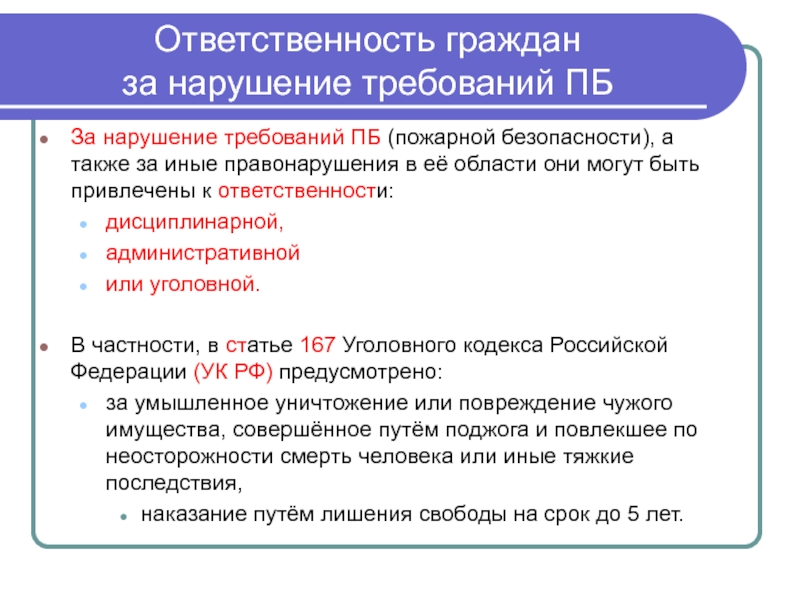 Какие виды ответственности предусмотрены за нарушения правил пожарной безопасности?