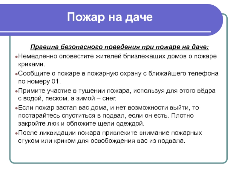 Правила безопасного поведения при пожаре на даче: