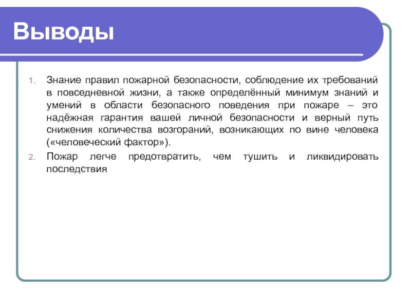 также определённый минимум знаний и умений в области безопасного поведения при пожаре – это надёжная гарантия вашей личной безопасности и верный путь снижения количества возгораний, возникающих по вине человека («человеческий фактор»).