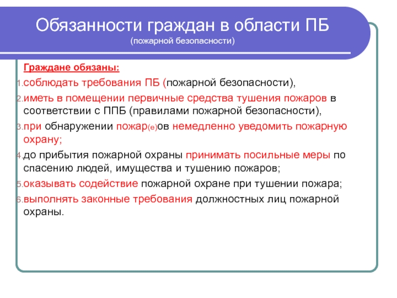 Слайд 6Обязанности граждан в области ПБ