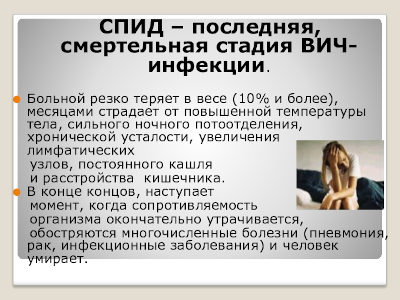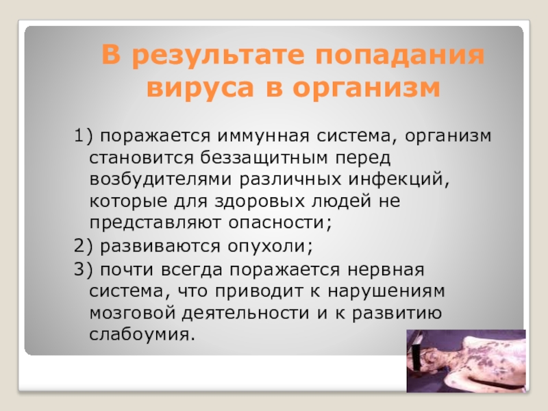 3. СПИД снижает сопротивляемость организма к инфекциям;