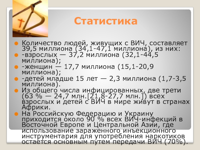 Количество людей, живущих с ВИЧ, составляет 39,5 миллиона (34,1-47,1 миллиона), из