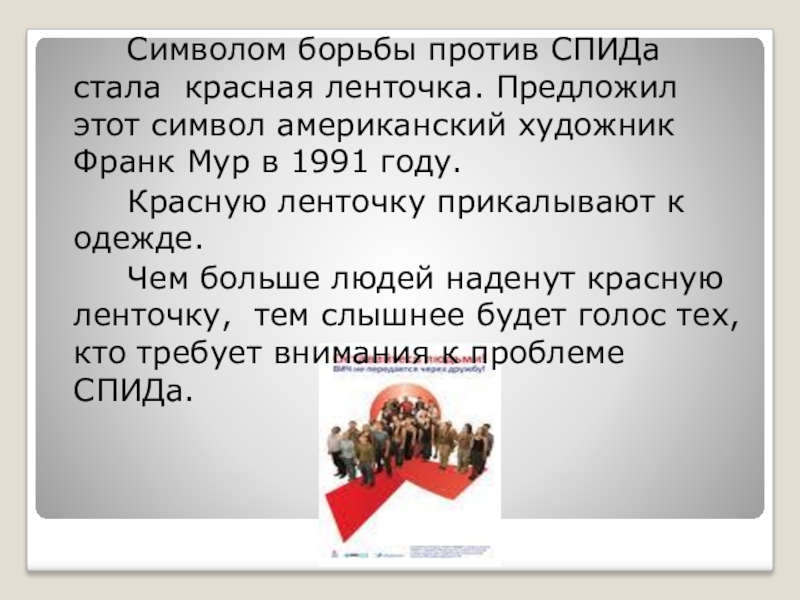 Слайд 32 Символом борьбы против СПИДа стала красная ленточка.