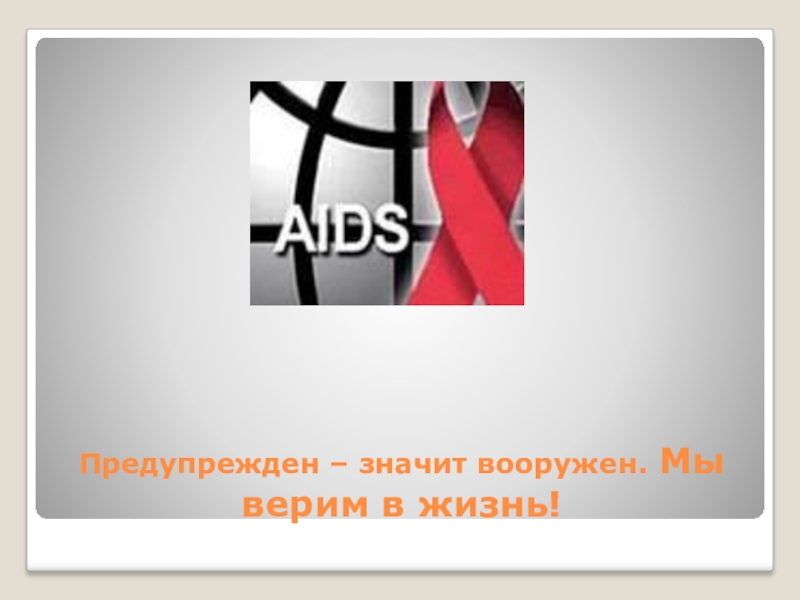 Слайд 37Предупрежден – значит вооружен. Мы верим в жизнь!
