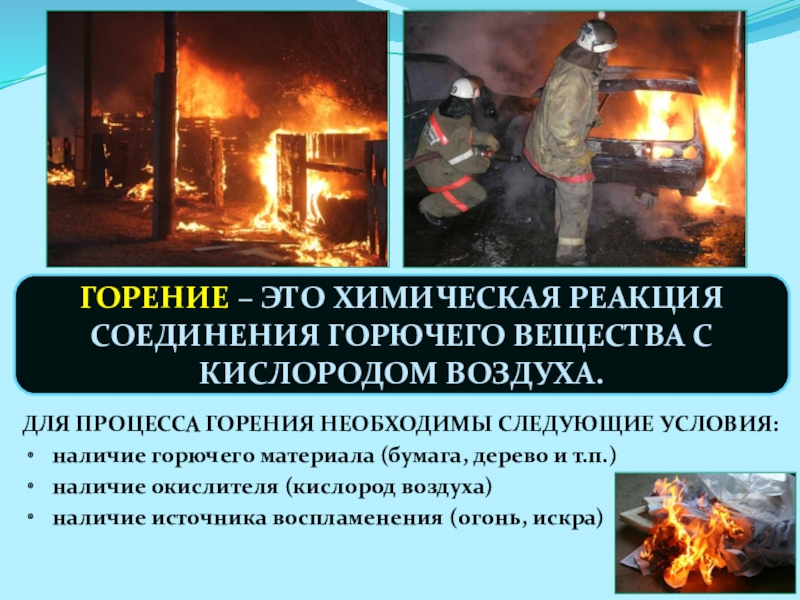 ДЛЯ ПРОЦЕССА ГОРЕНИЯ НЕОБХОДИМЫ СЛЕДУЮЩИЕ УСЛОВИЯ: