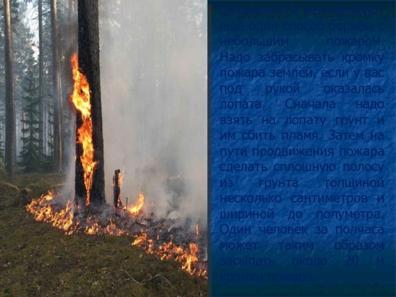 Слайд 16 Специалисты рекомендуют ещё один способ борьбы с небольшим пожаром.
