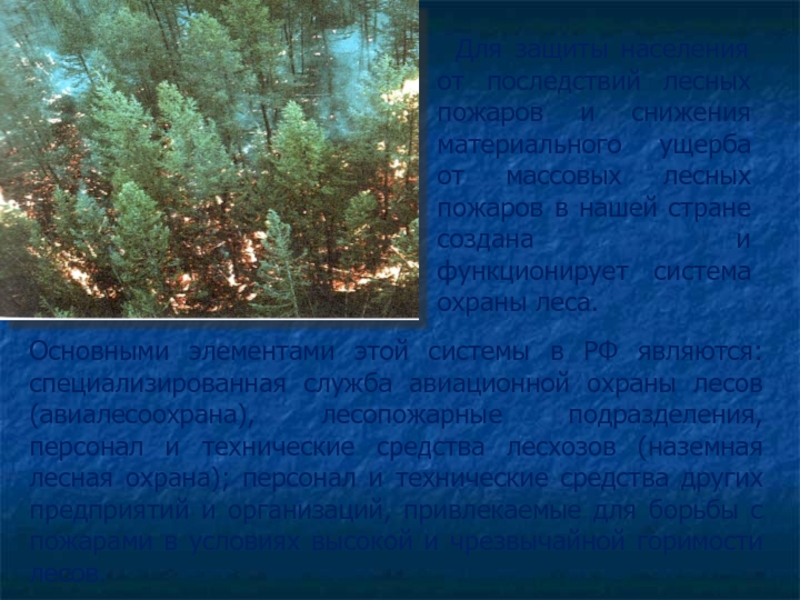 Слайд 10 Для защиты населения от последствий лесных пожаров и снижения