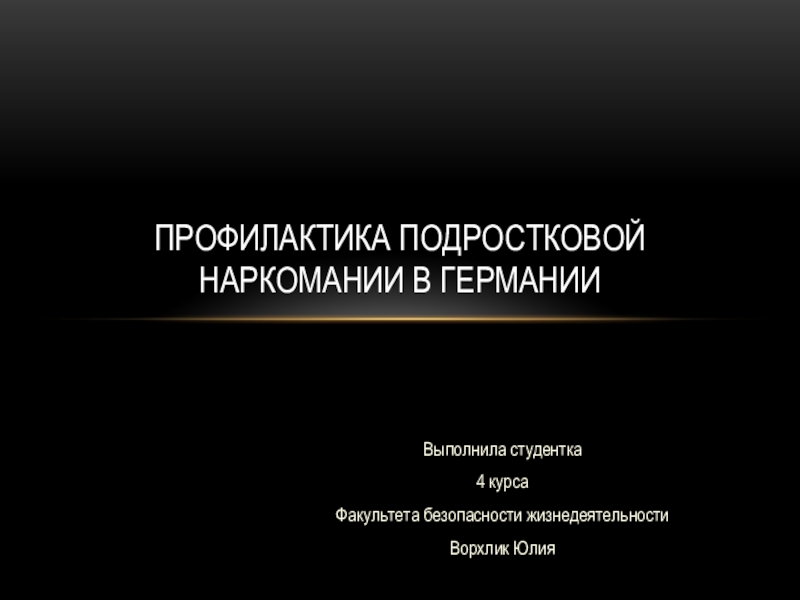 Выполнила студентка4 курсаФакультета безопасности жизнедеятельностиВорхлик ЮлияПрофилактика подростковой наркомании в Германии