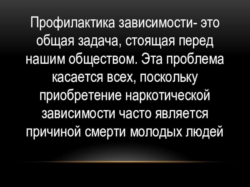 Слайд 5Профилактика зависимости- это общая задача, стоящая перед нашим обществом. Эта проблема