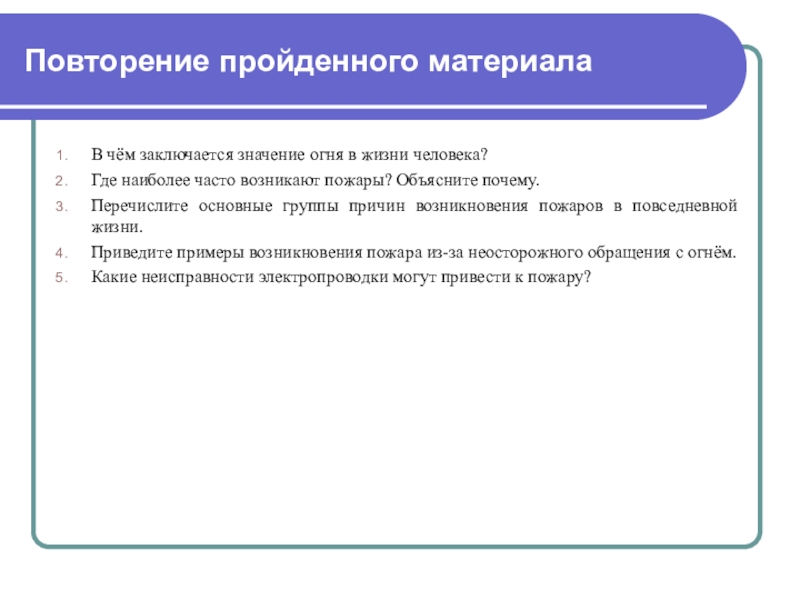Перечислите основные группы причин возникновения пожаров в повседневной жизни.