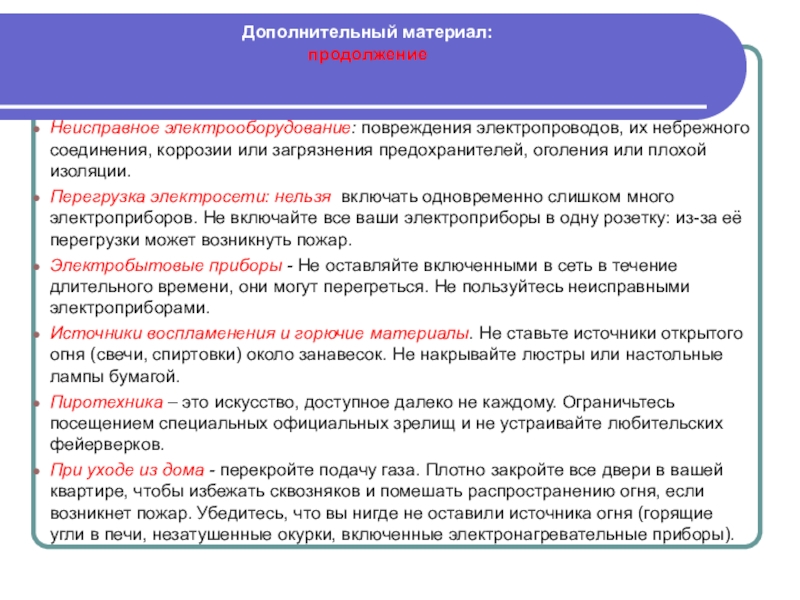Электробытовые приборы - Не оставляйте включенными в сеть в течение длительного времени, они могут перегреться. Не пользуйтесь неисправными электроприборами.
