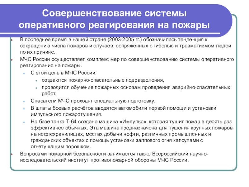 Слайд 12Совершенствование системы оперативного реагирования на пожары
