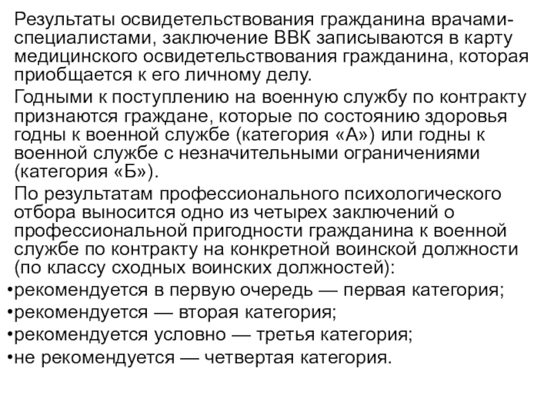 Слайд 9Гражданин, получивший четвертую категорию по результатам профессионального психологического отбора, на военную