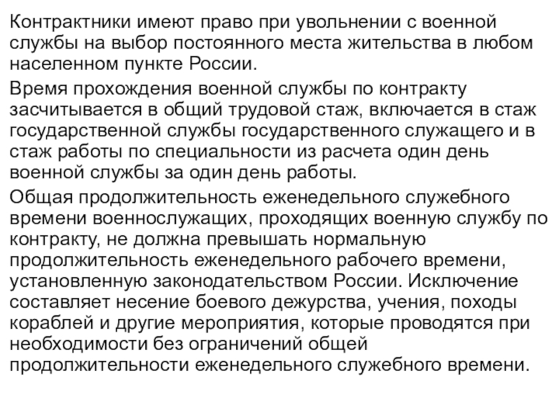 Слайд 11Контрактники имеют право при увольнении с военной службы на выбор постоянного