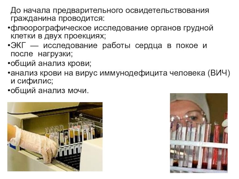 Слайд 7До начала предварительного освидетельствования гражданина проводится: