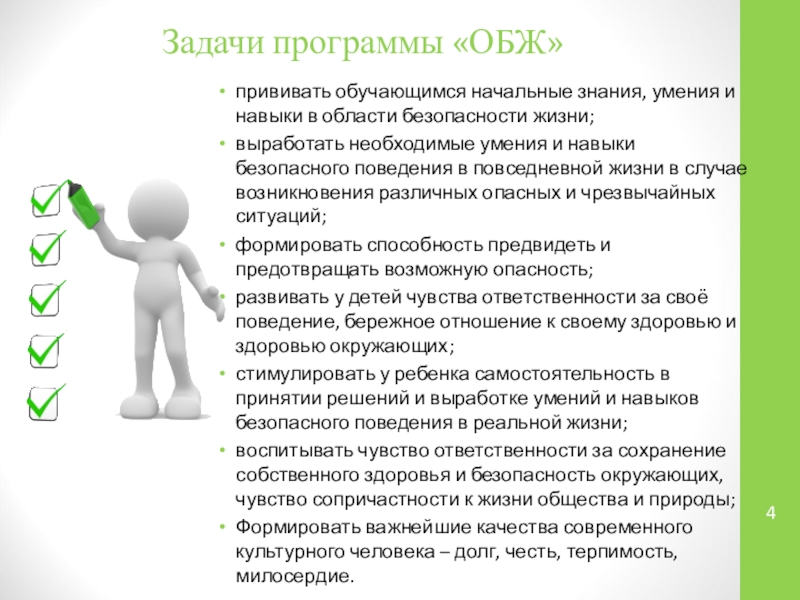 выработать необходимые умения и навыки безопасного поведения в повседневной жизни в случае возникновения различных опасных и чрезвычайных ситуаций;