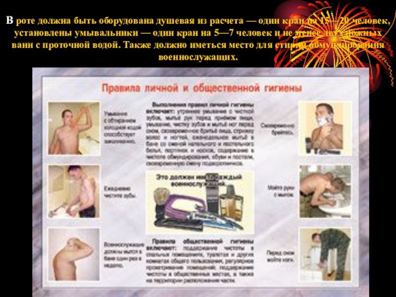 Слайд 8В роте должна быть оборудована душевая из расчета — один кран
