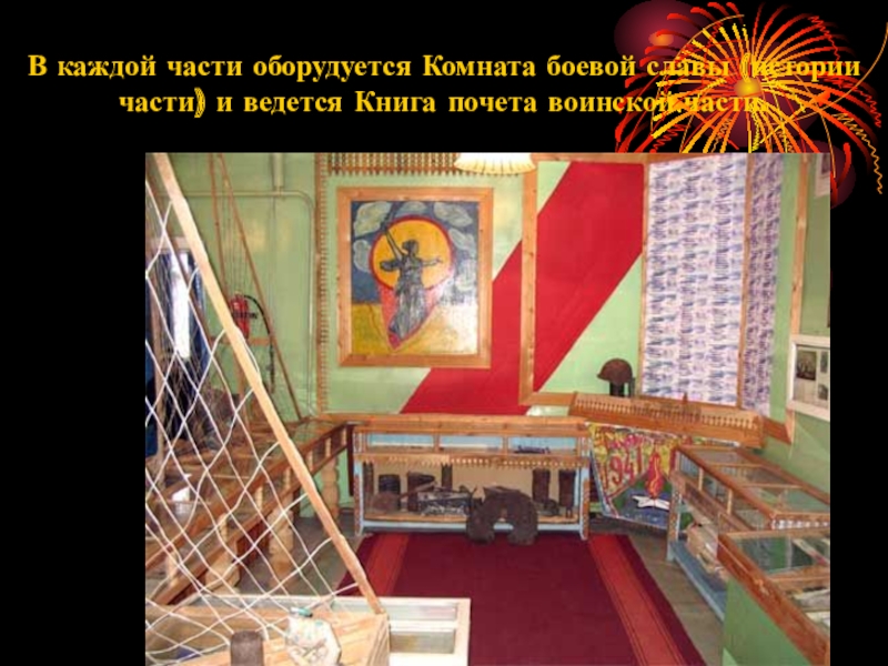 Слайд 11В каждой части оборудуется Комната боевой славы (истории части) и ведется