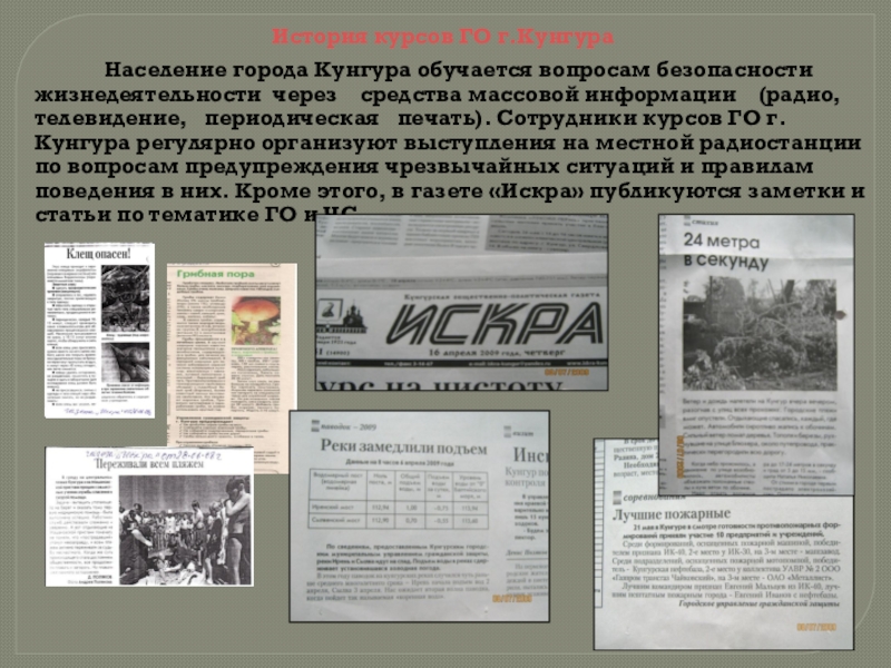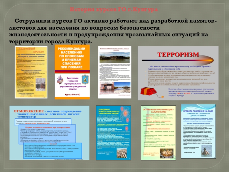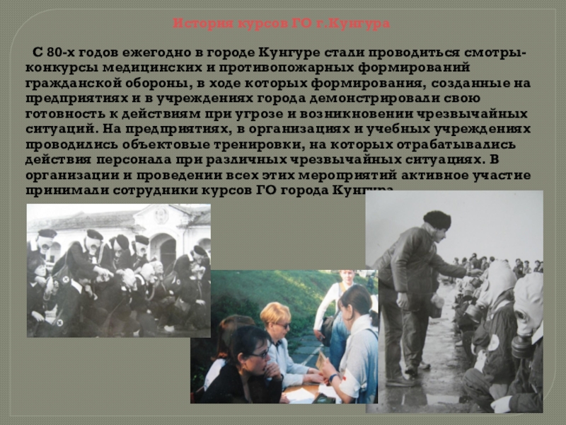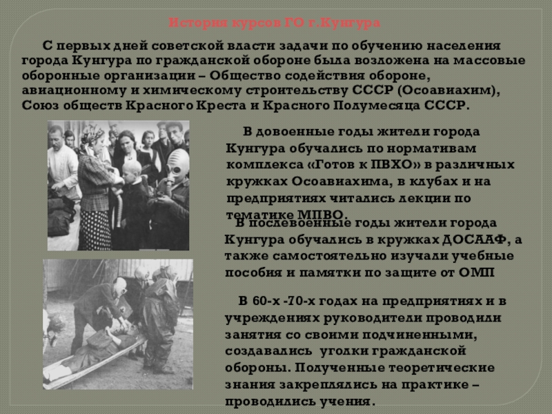 В послевоенные годы жители города Кунгура обучались в кружках ДОСААФ, а также самостоятельно изучали учебные пособия и памятки по защите от ОМП