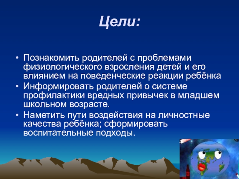 Познакомить родителей с проблемами физиологического взросления детей и его влиянием на