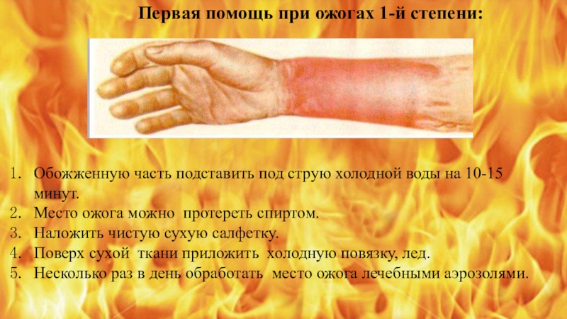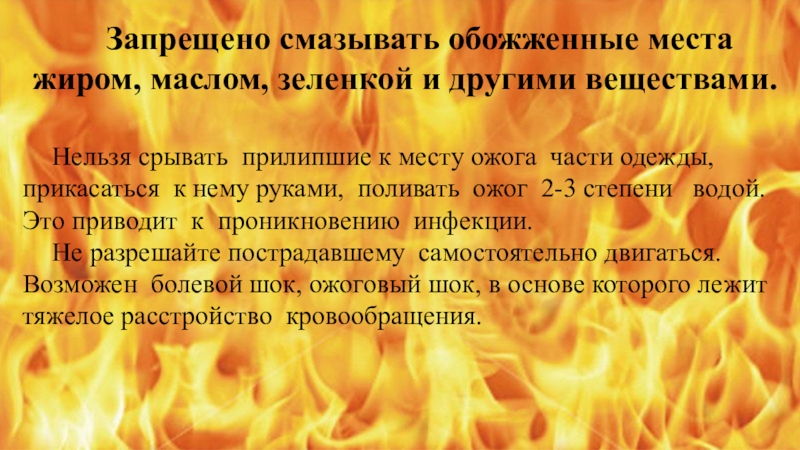 Запрещено смазывать обожженные места жиром, маслом, зеленкой и другими веществами.