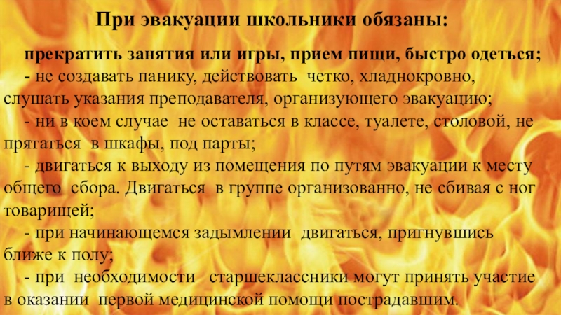 Все дети и взрослые должны покинуть здание школы, не создавая паники.