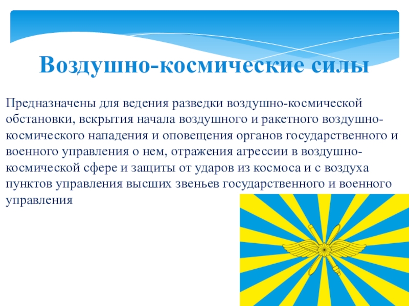 ракетного воздушно-космического нападения и оповещения органов государственного и военного управления о нем, отражения агрессии в воздушно-космической сфере и защиты от ударов из космоса и с воздуха пунктов управления высших звеньев государственного и военного управления