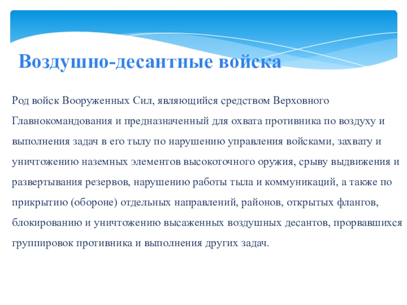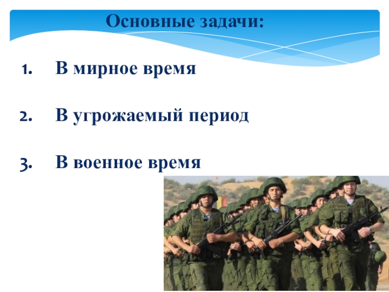 Слайд 16В мирное время Воздушно-десантные войска выполняют основные задачи по поддержанию боевой