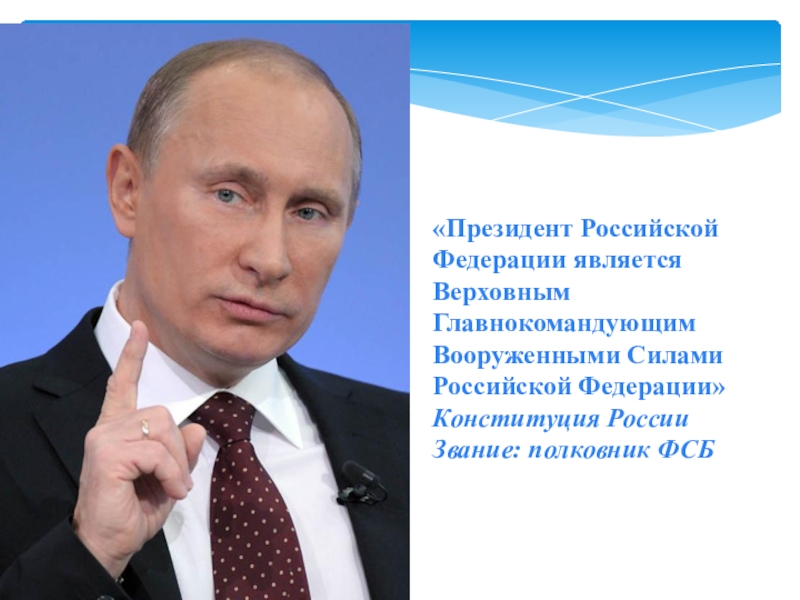 Слайд 2«Президент Российской Федерации является Верховным Главнокомандующим Вооруженными Силами Российской Федерации»