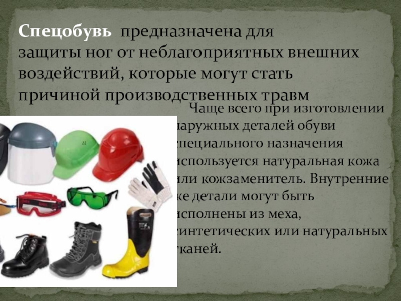Спецобувь предназначена для защиты ног от неблагоприятных внешних воздействий, которые могут стать причиной производственных травм