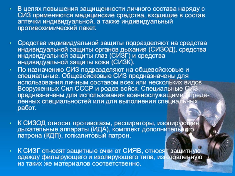 Средства индивидуальной защиты (СИЗ) предназначены для сохранения боеспособности