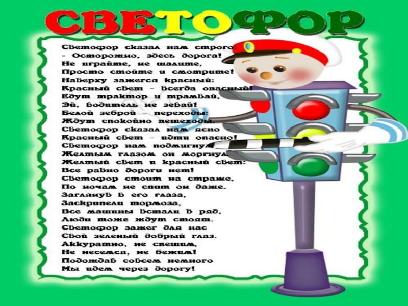Презентация, доклад Светофор к конспекту по ПДД на тему: Красный ,жёлтый,зелёный.