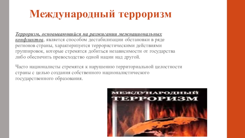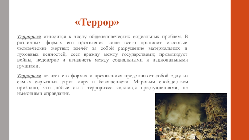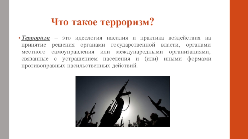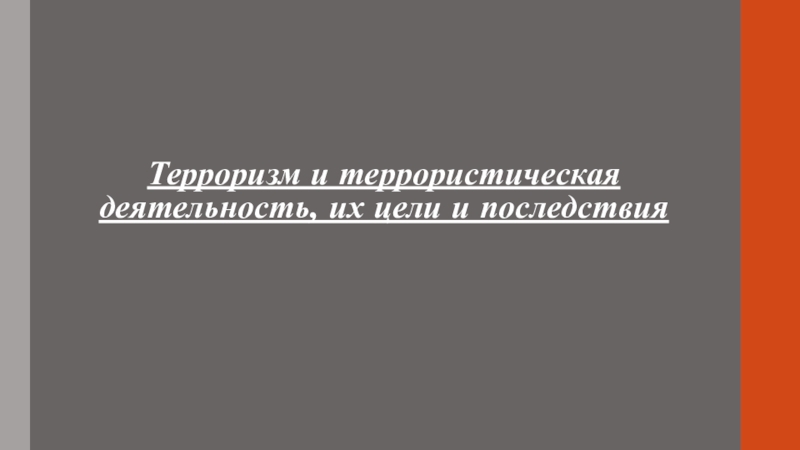 Слайд 1Терроризм и террористическая деятельность, их цели и последствия
