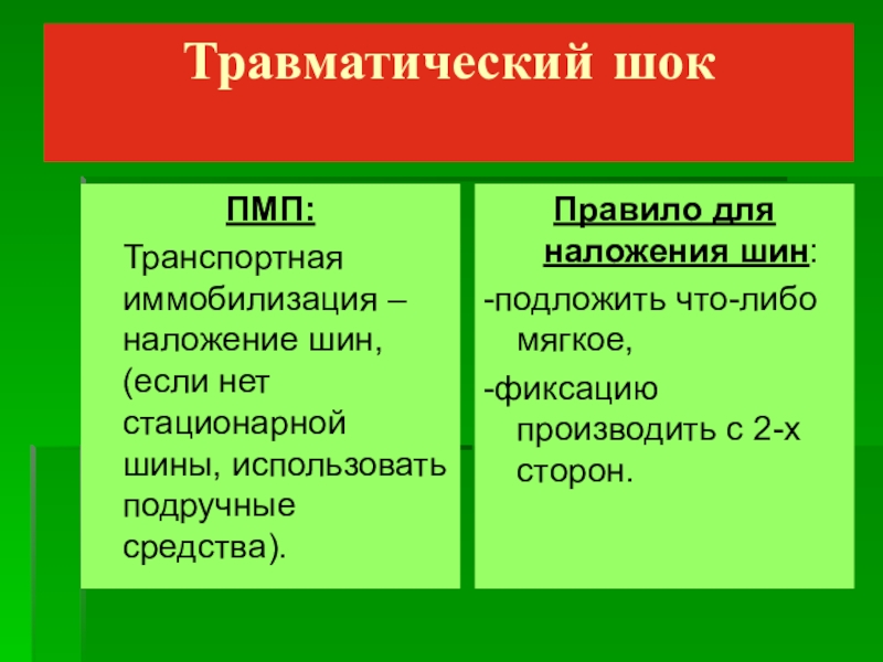 Правило для наложения шин: