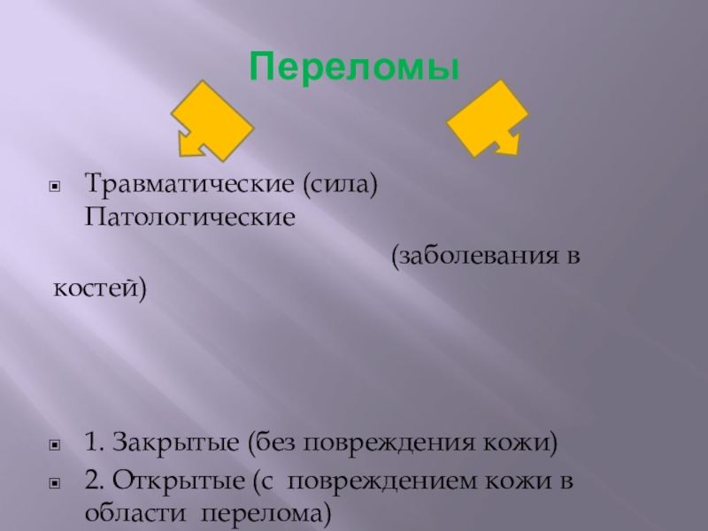 Перелом- полное нарушение целостности кости под действием различных факторов.