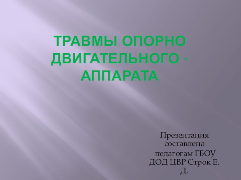 Травмы опорно двигательного -аппаратаПрезентация составлена педагогам ГБОУ ДОД ЦВР Строк Е.Д.