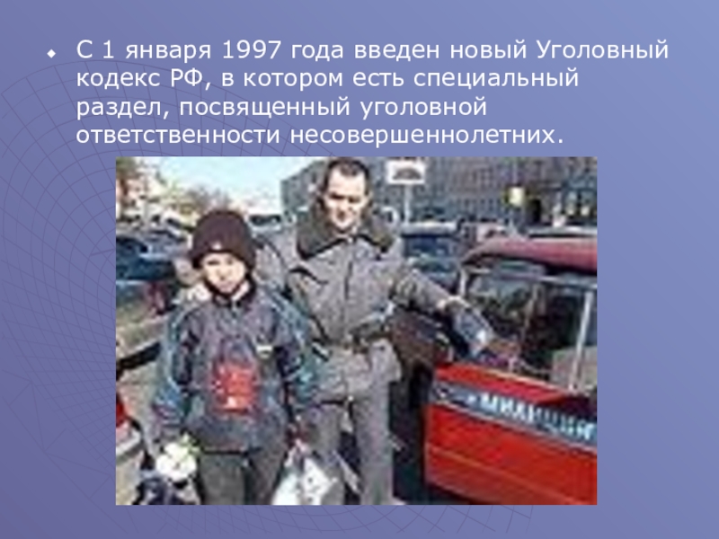 С 1 января 1997 года введен новый Уголовный кодекс РФ, в котором есть специальный раздел, посвященный уголовной ответственности несовершеннолетних.