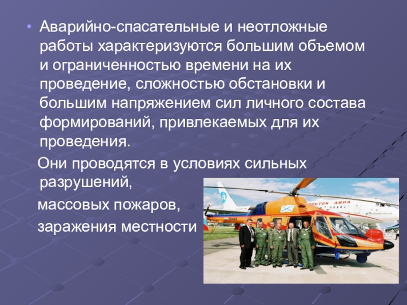 Слайд 5Аварийно-спасательные и неотложные работы характеризуются большим объемом и ограниченностью времени
