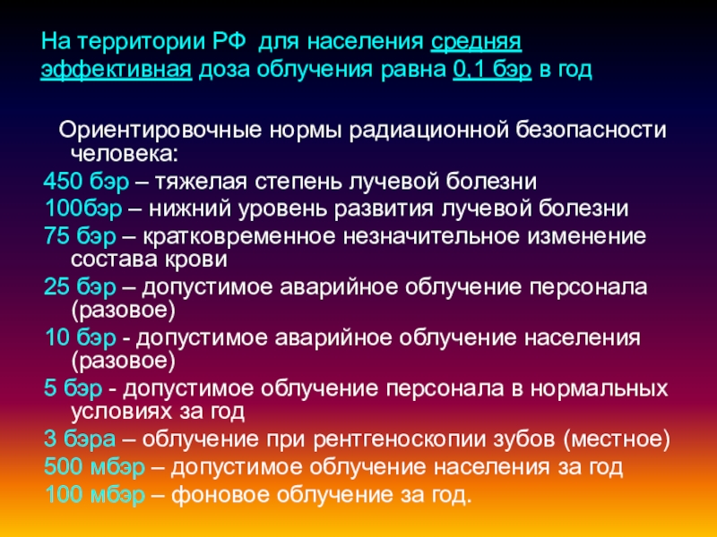 Ориентировочные нормы радиационной безопасности человека: