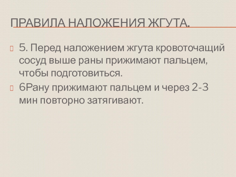 Слайд 27ПРАВИЛА НАЛОЖЕНИЯ ЖГУТА.