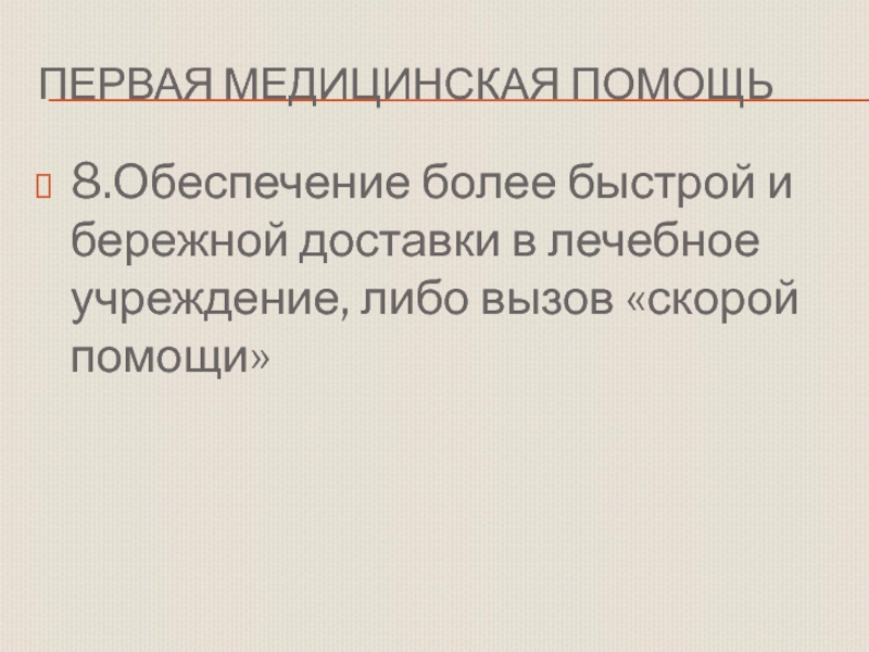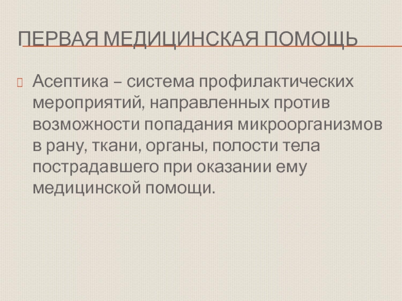 Слайд 20ПЕРВАЯ МЕДИЦИНСКАЯ ПОМОЩЬ