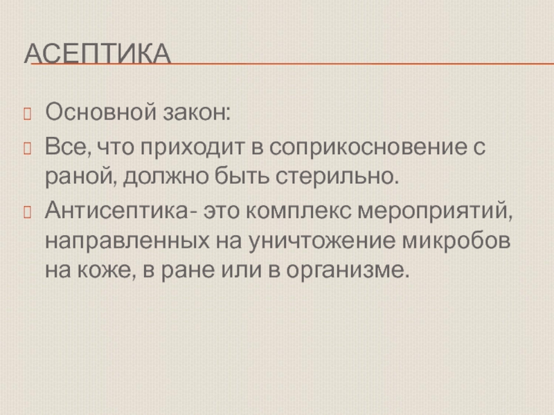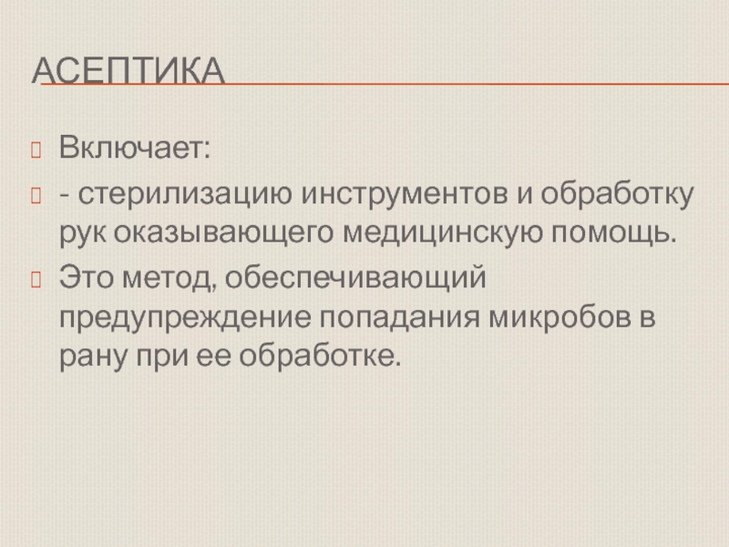 Асептика – система профилактических мероприятий, направленных против возможности попадания