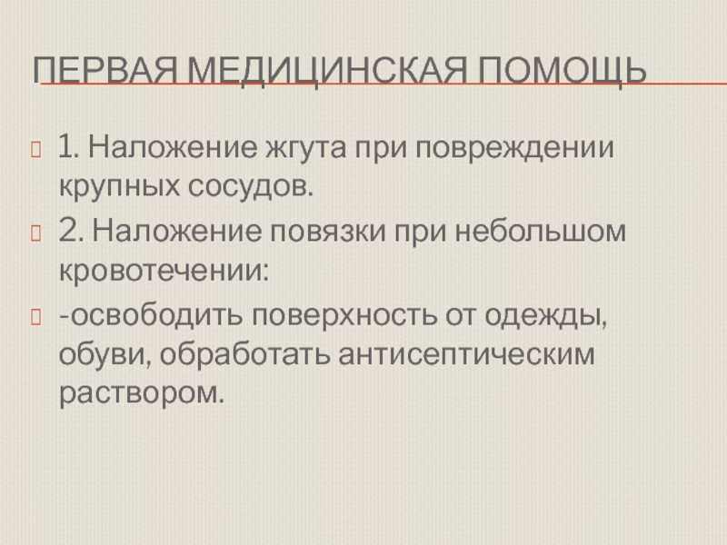 Слайд 2ПЕРВАЯ МЕДИЦИНСКАЯ ПОМОЩЬ ПРИ РАНЕНИЯХ