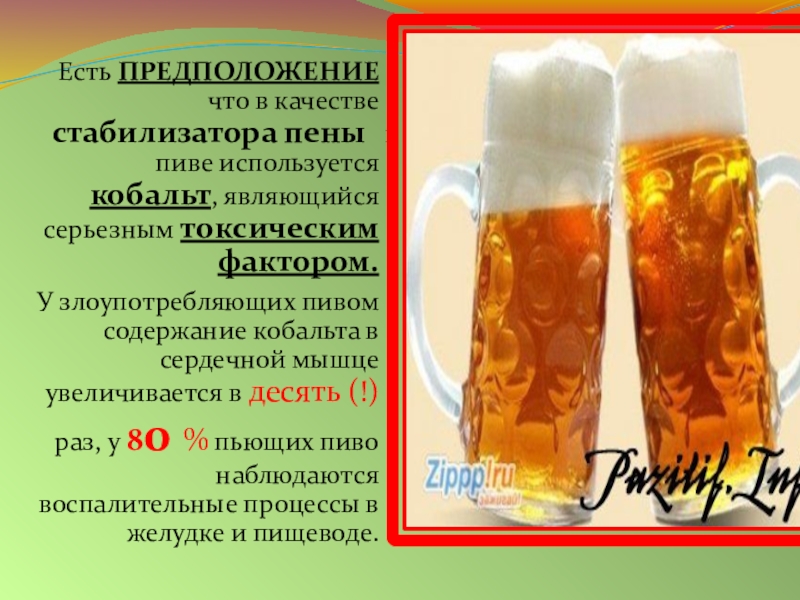 - В материалах ВОЗ указано, что потребление именно пива достоверно повышает риск развития рака толстой кишки