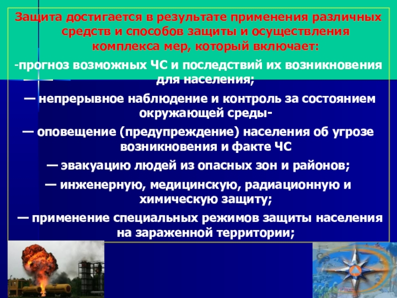 — инженерную, медицинскую, радиационную и химическую защиту;