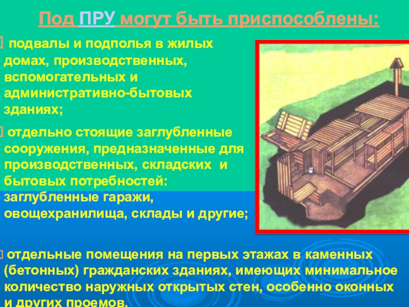 ПРУ – защитное сооружение, предназначенное для укрытия населения от поражающего