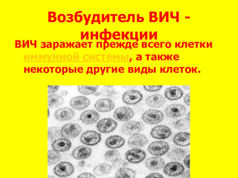 Возбудитель ВИЧ - инфекцииВИЧ заражает прежде всего клетки иммунной системы, а также некоторые другие виды клеток.