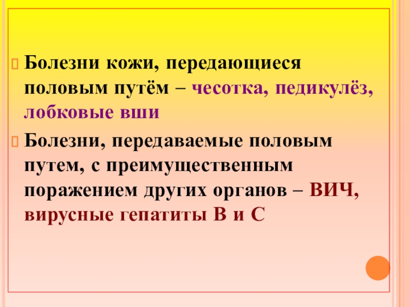 Болезни кожи, передающиеся половым путём – чесотка, педикулёз, лобковые вши