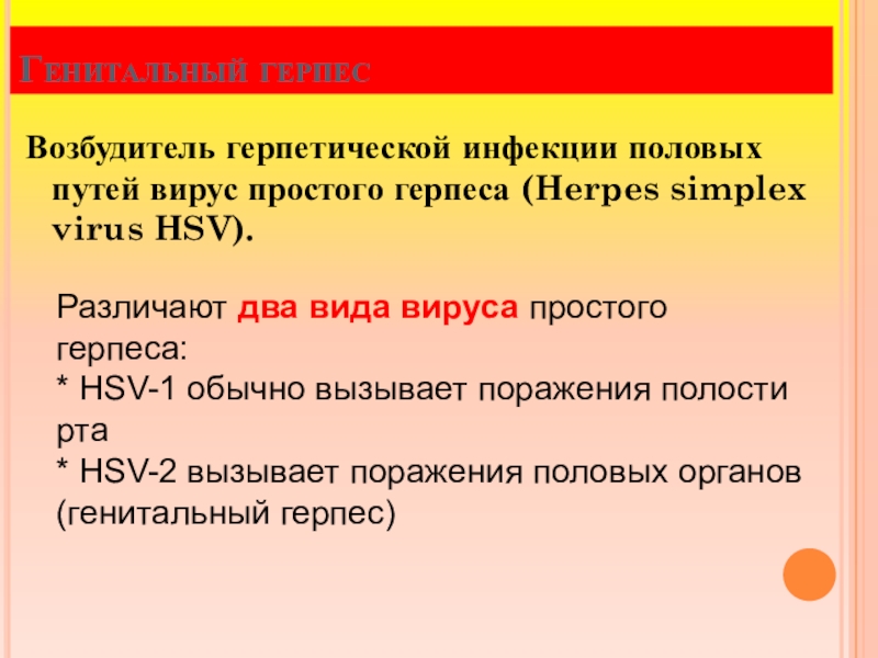 * HSV-2 вызывает поражения половых органов (генитальный герпес)