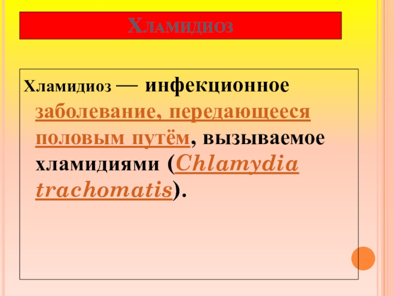 Хламидиоз — инфекционное заболевание, передающееся половым путём, вызываемое хламидиями (Chlamydia trachomatis).